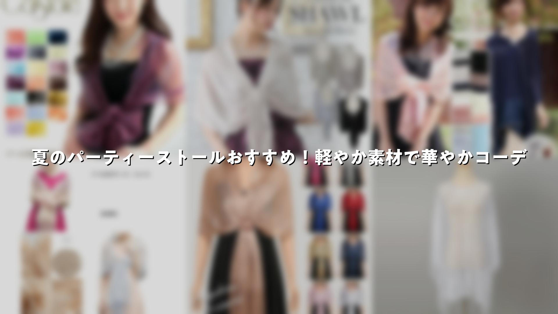 夏のパーティーシーンで活躍するストールは、軽やかで涼しげな素材が魅力です。ドレスに合わせやすいアイテムとして、冷房対策やスタイルアップにぴったりで、Amazonや楽天でさまざまな種類が販売されています。シフォンやオーガンジー、レースなどの素材が夏向きで、華やかな印象をプラスします。